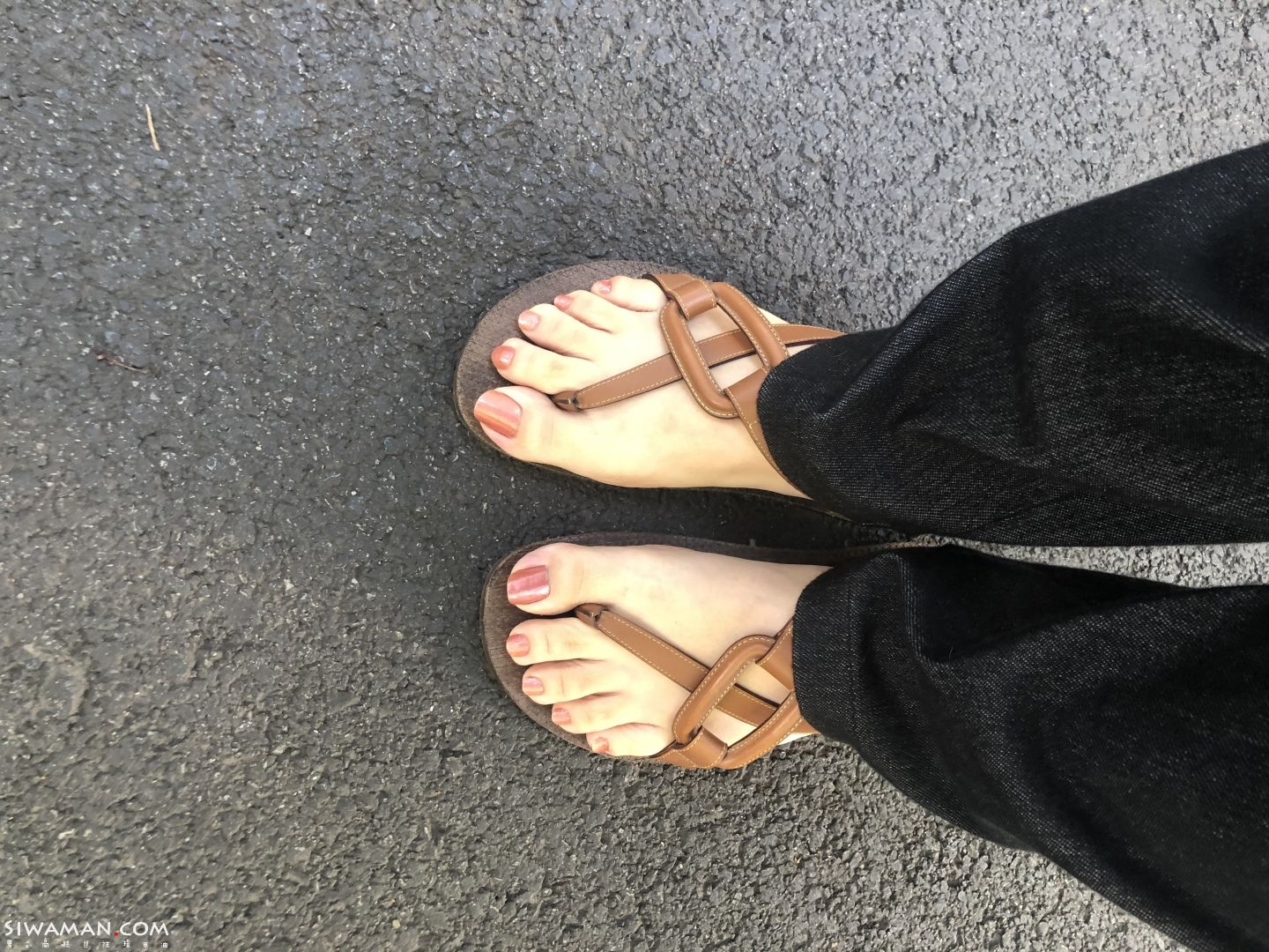 红指甲油配凉拖真漂亮
